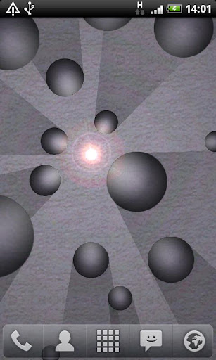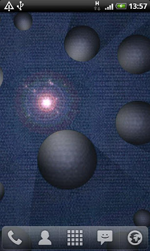 Shadow Balls Live Wallpaper menunjukkan kilat cahaya yang bergerak yang menerangi beberapa spheres casting Nice real time shadows.