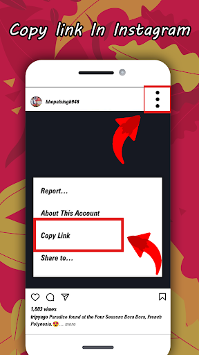 Ketik ikon tiga titik dalam skrin mana-mana jawatan, cerita, sorotan, reels menyalin atau berkongsi pautan ke aplikasi ini dan foto & video akan disimpan ke telefon anda dan disegerakkan ke galeri anda secara automatik.