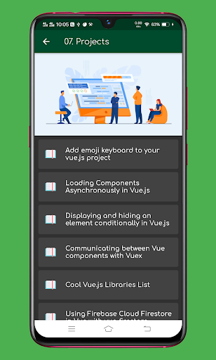 Aplikasi ini akan membantu anda memahami Vue.Js dengan betul dan mengajar anda tentang bagaimana untuk memulakan pengekodan. Di sini kita meliputi hampir semua fungsi, perpustakaan, atribut, rujukan. Tutorial berurutan memberitahu anda dari asas untuk memajukan tahap.