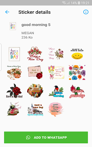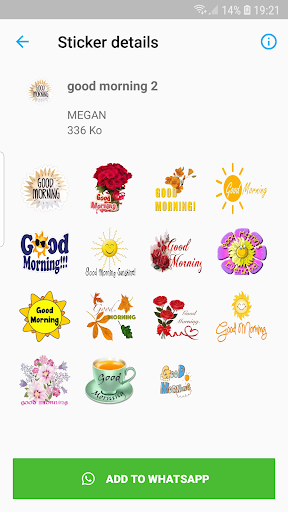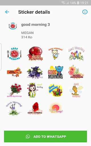 Dalam kemas kini WhatsApp baru, mereka melancarkan kemas kini pelekat baru jadi kami membawakan pelekat WAStickerApps Good Morning Sticker & Good Morning Pack untuk WhatsApp untuk Good Morning. Pertama sekali, anda perlu memasang aplikasi, Periksa dan pilih kategori dan pilih, kemudian klik butang tambah ke WhatsApp. Semua koleksi Emoji dan emotikon cinta yang elegan akan menjelaskan perasaan hati anda dengan cara yang baik. ..