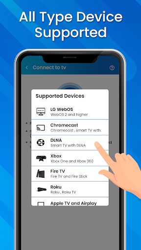 APP akan membantu anda mengimbas dan mencerminkan telefon atau tablet Android anda ke skrin di TV anda dan dapat memainkan video atau muzik dan foto, dan lain-lain dalam telefon pintar anda Dengan mana-mana peranti TV pintar, komputer riba atau tablet, dan lain-lain pada bila-bila masa. Tidak memerlukan perkakasan tambahan yang ditetapkan atau wayar yang diperlukan, hanya menghantar telefon anda ke TV pintar anda untuk menstrimkan cermin skrin yang cepat dan mudah.