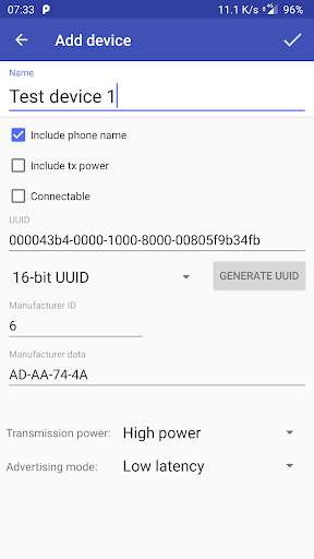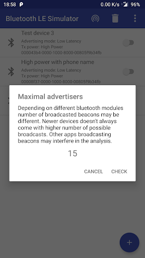 • Some smartphones may not be capable of simulating Bluetooth Low Energy devices at all
