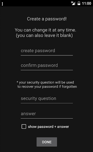 Create a password to secure your information, or leave the password blank so you don't need to enter a password to log in. Change your password and/or security information (to recover password) at any time.