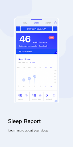 Menganalisis kualiti tidur harian anda, dan menunjukkan trend perubahan tidur jangka panjang dengan melihat laporan mingguan dan bulanan.
