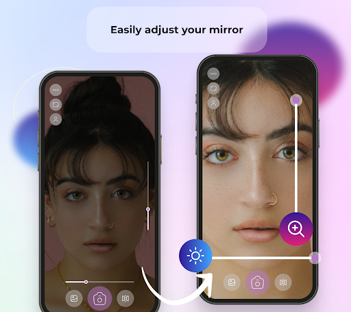 Untuk memeriksa rupa anda dan melihat gigi anda, gunakan aplikasi Zoom Mirror denganCermin cahaya dan cermin pembesar.Lebih -lebih lagi, ia mempunyai cermin yang boleh dimakan yang boleh anda gunakan untuk melihat butiran dekat dan jauh.Ia juga berfungsi sebagai cermin poket, jadi anda boleh memeriksa wajah anda dengan aplikasi cermin kecantikan ini walaupun dalam pencahayaan redup dengan menghidupkan cahaya cermin.