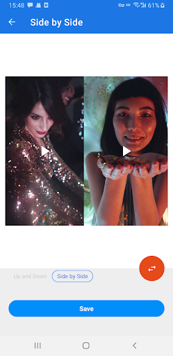 Sokongan menggabungkan dua video ke dalam satu video dalam susunan mendatar.Video dalam susunan menegak.