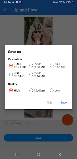 Anda boleh menggabungkan video dengan mod urutan,mod sampingan, mod up-and-down, mod cermin dan mod gambar-gambar.