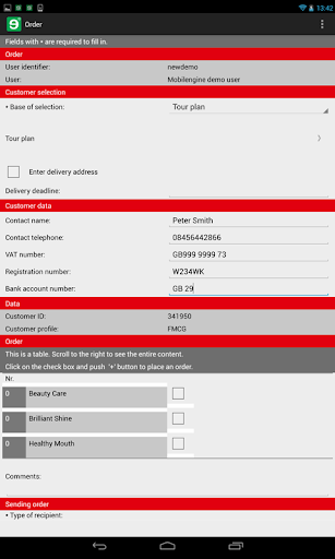 This is a demo app. Contact Mobilengine to discuss your customized solution: office@mobilengine.com or +44 207 872 5866.
