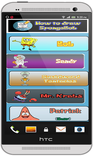*********************************************MORE app TO DRAW IN: goo.gl/WFX3F*********************************************** How to drawSpongeBob. is the perfect app to draw your favorite characters of SpongeBob in a few simple steps.** This app is perfect for kids.** Draw: Bob ( 2 posistions), Sandy, Mr. Krabs, Gary, Squidward (2 positions), Patrick (2 positions), Mermaid Man and plankton.More characters in a future updates.