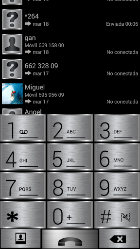 Ini adalah tema untuk Exdialer & Contacts Aplikasi: com.modoohut.dialer.theme Tema yang bagus dengan Big Numbers Metallics Buttons Pemasangan Tema: -Openexdialer -menu -Pembuat -Theme -Pilih perak logam -Apply Nikmati