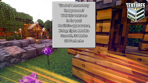 Textures mod will make your world more beautiful and improve rendering: reflection map, shadow map, normal maps, HD maps. Also, any texture is now available to you, mods for animals, birds, cars, furniture, varnish block, modern house, weapon mod, tail mod, TNT, buildings, wings, flight, Vanilla and many others are available. With realistic textures, you will see much more beauty in the world of Minecraft PE than before.
