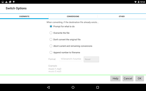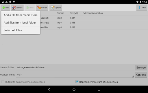 Suis Fail Audio Converter Plus menyokong semua format popular dan sangat mudah digunakan.Dengan Suis Plus untuk Android, anda boleh menukar atau memampatkan fail bunyi dalam beberapa minit.Anda juga boleh menggunakan ciri penukaran batch untuk menukar beberapa fail audio pada masa yang sama.Aplikasi tipikal untuk penukar suis termasuk bunyi untuk peranti mudah alih, menjimatkan ruang cakera keras, mewujudkan nada dering, dan banyak lagi!