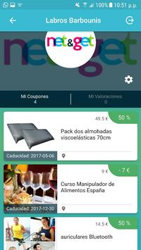 net&get makes available to any business, service company, traditional or online trade, restaurant ... an innovative generator of virtual coupons that allows you to create coupons with offers and discounts according to the needs of your business easily and quickly, as well as publish an ad in our marketplace or in any other. The coupons you post will appear in this app and in the app of our marketplace and also on our website www.netandget.com