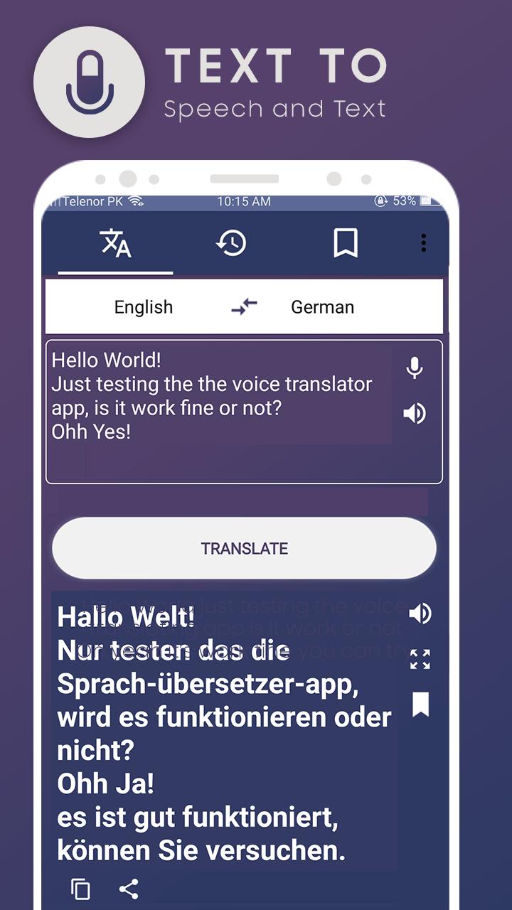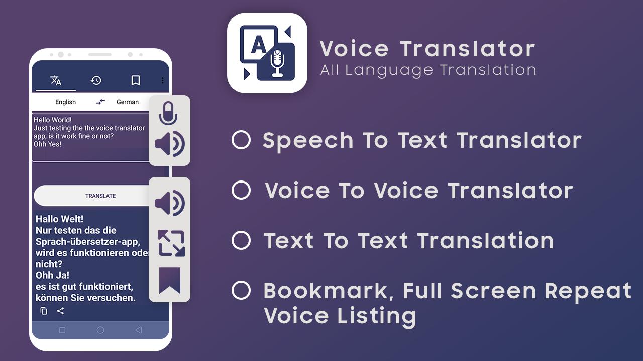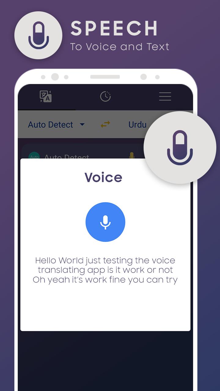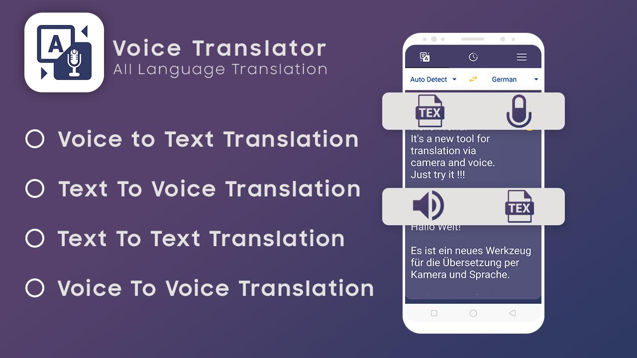 Voice translator all language universal translator Application you can translate your voice and talk out loud the translate results. voice translator can record your voice and then translate in to multiple languages. voice translation should be possible from any language to any language thus can be the word reference meaning.