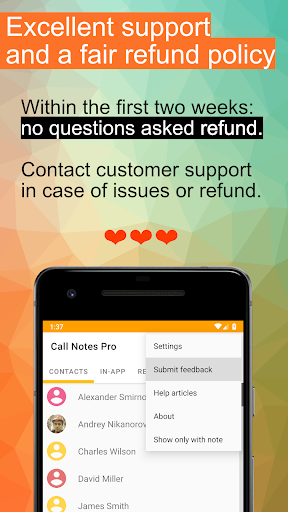 Notes Panggilan Pro akan menunjukkan kepada anda tetingkap terapung dengan nota anda dan semua butiran hubungan. Anda akan sentiasa tahu siapa yang memanggil. Ia mudah untuk mengemas kini nota selepas atau semasa panggilan. Simpan komen anda atau apa-apa maklumat berguna lain mengenai kenalan tersebut.