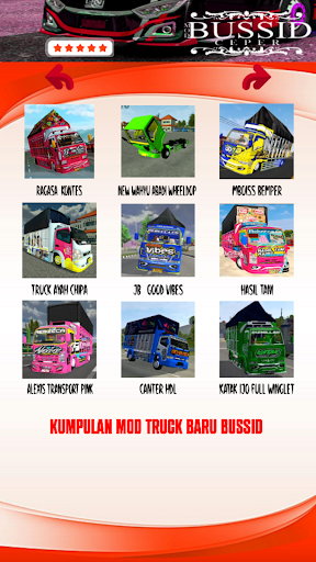 Fun 4 Syle Variants, Sulawesi Special Truck Bussid Mod, Mod Truck Giga Trailer Tank v3 Super Detail Gede & amp;Long, trak trak mod Thailooook Bor Up, Mod Bussid Scenia Truck Trought, Mod Damkar Bussid & amp;Mod ambulans mod. Kemudian kemudian apa yang ditunggu -tunggu oleh mania bussid, ia Cuba gunakan Mod Bussid Muffler Wolf, Mod Antigosip Trak Bendera dan Mod Dump Dump Standard. Bagi mereka yang suka perlumbaan dan pengubahsuaian, anda mesti menggunakan mod perlumbaan trak, mod Mod Racing Wheels, Mod Bussid Chasis Suspension dan Mod Truck Bussid baru UTAMA trans