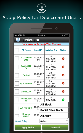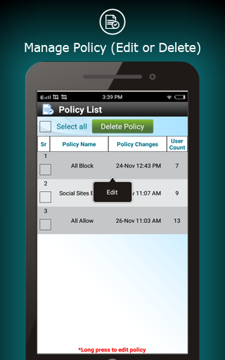 * Policy Management using Android App and Web