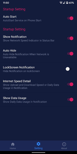 - Tunjukkan kelajuan rangkaian dalam pemberitahuan & bar status dalam aplikasi.