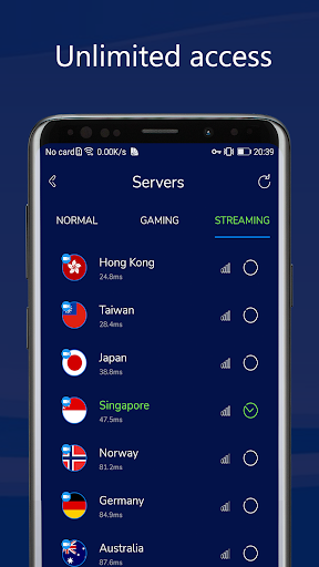 Tiada pendaftaran atau log masuk. Satu ketik untuk menyambung ke pelayan VPN.