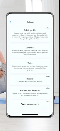 Dengan Open anda boleh mendaftarkan setiap aktiviti di gim atau studio anda dan dapatkan pandangan mengenai setiap aspek perniagaan anda.Jejaki jualan tiket, jadual dan guru dengan laporan terperinci dan fleksibel.