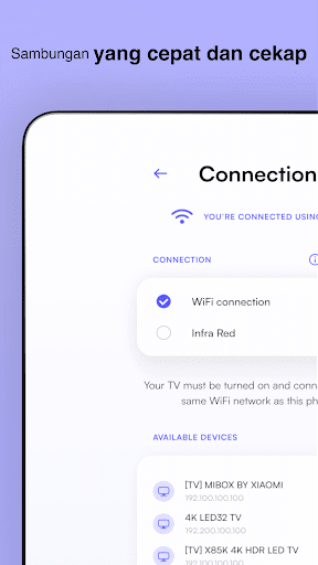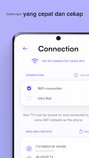 Kawalan jauh TV Xiaomi Mibox bertujuan untuk kawal semua peranti Mi Box dengan pilihan kawalan jauh terbina dalam. Sambungkan telefon dan kotak TV anda. Selepas sambungan berjaya, pengguna akan dipandu arah ke skrin kesukaannya.