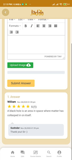 Pelajar akan memberi penilaian kepada guru dari 1 hingga 5 bintang berdasarkan kepuasan jawapannya.