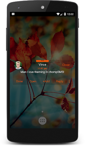 This is the Orange2 theme add-on to the chompSMS application. Once installed, access the theme in chompSMS > Settings > Theme It! Note: requires at least chompSMS version 6.31