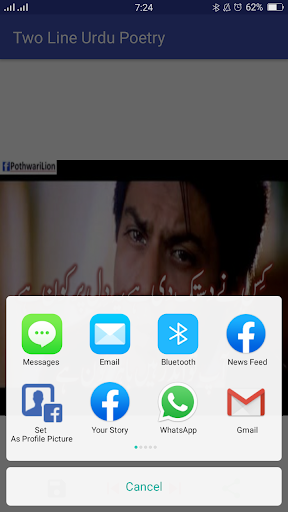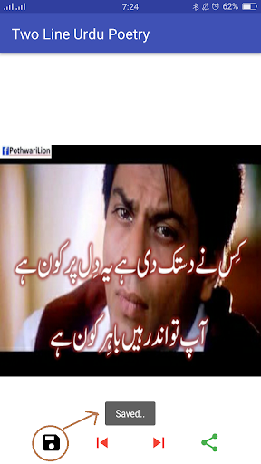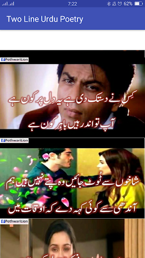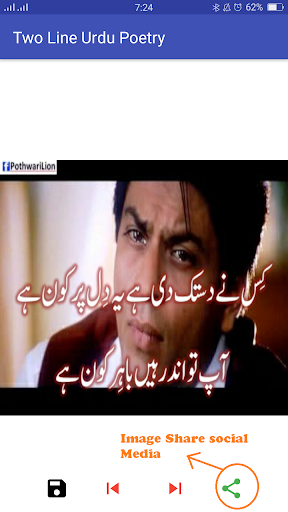 "Dua baris Urdu sedih puisi" adalah salah satu aplikasi Shayari terbaik yang boleh direka bentuk terutamanya dalam imej bahasa Urdu Shayari.Dalam aplikasi ini, anda boleh berkongsi imej puisi Urdu di mana-mana media sosial seperti Facebook, WhatsApp, Instagram, dan sebagainya. Urdu Shayari App menyediakan anda lebih daripada 100 imej Shayari.Anda boleh menyimpan imej dan berkongsi dengan rakan-rakan anda.
