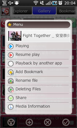 Video Player for Android devicesup:7 Nov 2012 2 :00UTCsince:8 May 2011 NotificationUpdated Japanese to English translation. Preparing for ReleaseLanguage Translation German, French, Spanish, Portuguese, Italian and so on Support Video FormatSupported video formats are limited.Can only play supported video formats for your device.HW Decoder onlyWill add SW Decoder feature in the future. Key Features Player Repeat play Resume play Continuous play Show playlist while playing AB repeat Playlist loop Shuffle playRandom play Background play Pop up play Gesture Pinch operation Horizontal reverse Screen Lock Bright Control When you remove the headset, mute and pause so that changes Galaxy only:Screenshots added auxiliary functions Playlist Explorer list Select video from folder Folder historyGallery list Show video list on sd card Show video list for each folder Video searchPlaylist Organize by tagHistory list Select video from history listYouTube list SearchDownload History search YouTube related videoOther features .nomedia onoff Remove fileRename file Videos share Resume AB Repeat Play by another app Will add features Player Portrait play TweetNowPlaying AB repeat expansion Continuous Play by another app Multiple play Playlist Copy file, Move file Sort playlist Categorize playlistFeatures under consideration Streaming play Capture screenshot SW decodeSupport Language English German Spanish Dutch Simplified Chinese Traditional Chinese Polish Bulgarian Indonesian Japanese Only part French Support OS version 2.2 or higherVerified DeviceGalaxy Sv2.2Galaxy S2v2.3.6Galaxy S3v4.0.3