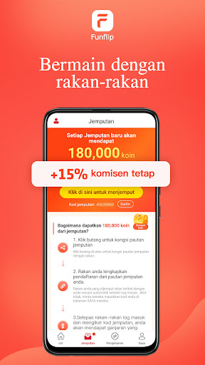 - Jemput rakan anda untuk menyertai Funflip dan anda semua akan mendapat tambahan koin percuma Money Maker!
