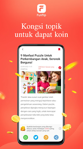 Dapat koin dengan berkongsi topik popular di Funflip. Anda boleh menikmati perkhidmatan pengeluaran tempatan terpantas untuk mengeluarkan koin anda. Sokong pengeluaran DANA, Bank dan Gopay.