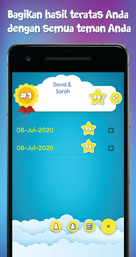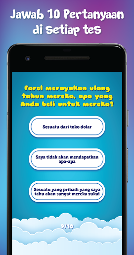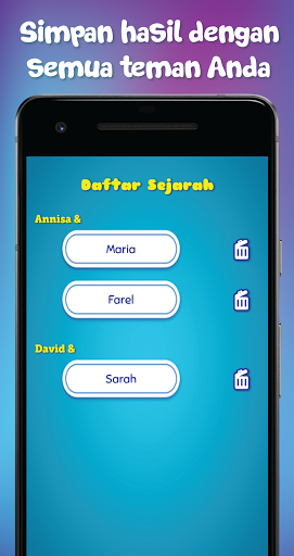 Sekarang anda dapat menguji persahabatan anda dengan Kawan dan keluarga hanya dengan mengikuti kuiz dengan cepat dan mudah.Bersenang -senang dengan rakan anda, simpan semua keputusan ujian anda dan lihat siapa kawan terbaik anda.Anda boleh berkongsi hasilnya dengan semua rakan anda supaya mereka dapat melihat bagaimana mereka menjaringkan gol dan apabila mereka mencuba permohonan, mereka juga boleh berkongsi hasil dengan anda! Selalu boleh bergantung pada orang itu.