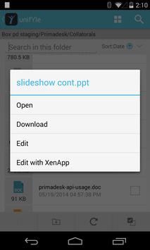 Mobilize your enterprise documents using Unifyle. Users can securely search, manage, share and edit files distributed over enterprise file stores behind the firewall, as well as cloud based storage services like Box, Google Drive, OneDrive etc using their mobile devices or computers. integrates with MDM solutions from Symantec and Citrix utilizing industry standard security features.
