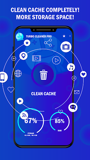 Turbo Cleaner Pro - Cleaner & Booster is a professional cleaning app, including cache cleaner, junk cleaner, storage cleaner, free up RAM, free up space, battery saver for Android system, which are all combined in simply one tap in this Turbo Cleaner app.