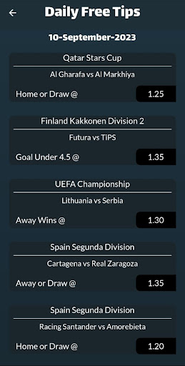 Adakah anda menikmati pertaruhan sukan dan ingin meningkatkan kemahiran anda?Pencinta sukan yang mencari tip dan ramalan pertaruhan yang boleh dipercayai akan menemui petua pertaruhan tulen adalah aplikasi yang sempurna.Kami menawarkan petua pertaruhan sukan harian yang telah terbukti berjaya pada masa lalu, membantu anda membuat keputusan yang lebih baik dan meningkatkan peluang anda untuk menang.