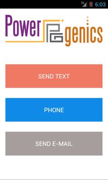 The app also provide a quick way to communicate with Powergenics either thru SMS (text), by phone, or by email.
