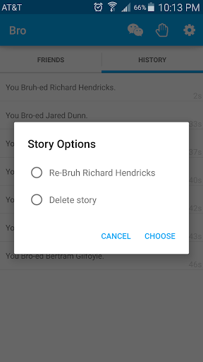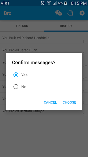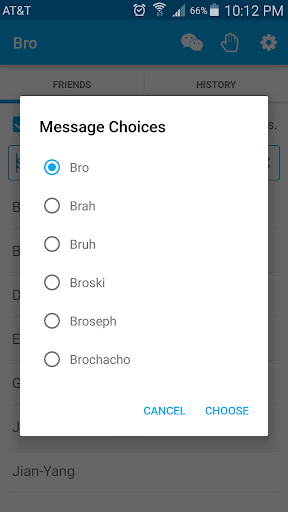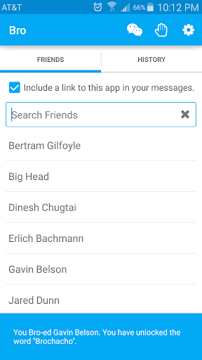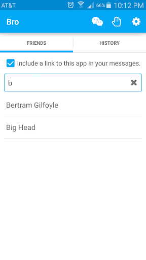 This app puts a spin on the current brommunication options by going through text instead of in-app. This way, as long as you have text messaging, you can speak your mind to your fellow bros even if they don't have the app. Just search for the friend you want to Bro and click! Also, you can unlock words and expand your brocabulary by including a link to the app in your messages!