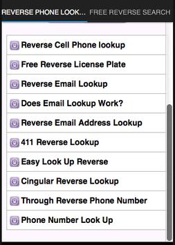Reverse Phone Lookup Free is an operation that enables you to easily look up a number either manually or from your phone`s call log. Reverse lookup apps usually do NOT contain any sort of database of the information it merely suggests free alternatives to do reverse search any number that called you.