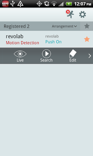 Ikon REVO akan muncul di bahagian atas paparan peranti Android untuk menunjukkan peristiwa masa nyata, seperti pengesanan gerakan, input penggera , atau amaran status DVR. Mengetuk ikon REVO akan memaparkan senarai peristiwa DVR baru-baru ini.