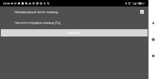 In "Continuous command flow" mode the programm will send via bluetooth a continuous flow of characters while the user presses the button. In another mode, the program will send one uppercase character when the user presses the button and the same lowercase character when he releases the button.