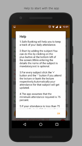 1.Safe Bunking will help you to keep a track of your everyday attendance.