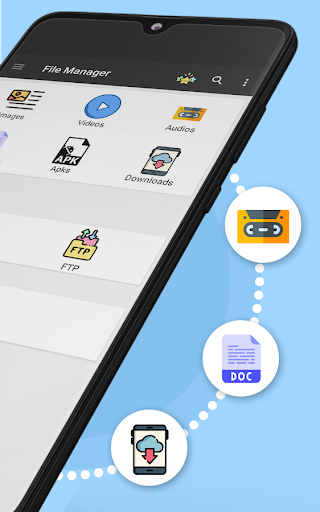 File Manager is a smart, lightweight but powerful file management application for Android. It provides full features of a file manager and it also helps you to transfer files to other devices in a fast and easy way. File Manager and File Explorer, helps you explore files by categories e.g. images, videos, documents, downloads, apps. It helps you categorize files into categories and manage them in seconds.