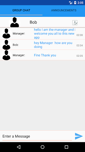 This app has two modes , first mode is the manager mode where manager can mark employee attendance , assign tasks and make announcements . The second mode is the employee mode where you can see manager announcements and can communicate in group chat with other employees and the manager.You can easily switch between manager and employee and