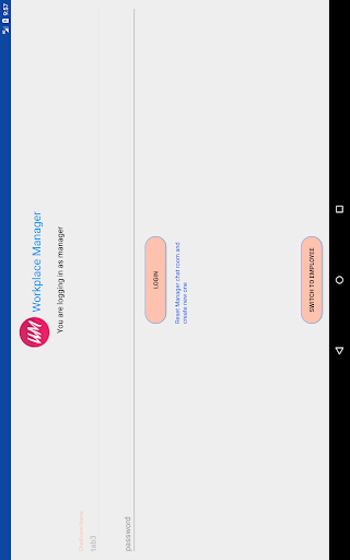 The last part of the app is that the manager can register a chat room to communicate with his employees.The manager must enter name and password and should share these details with his employees.The employees will install the app and will be asked to choose between manager and employee ,