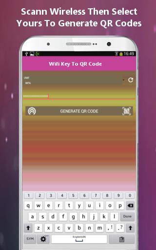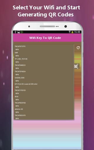 without worrying that others can see your wifi passcode and use your Wifi without your knowledge, but with Wireless QR code images easily enables you to share your WiFi network password. Your guest can scan these QR codes Reader with WIFI QR code scanner to let them join your Wifi network Connection easily with your Android smart Phone display to without typing anything Like Passcode/ Password at all, and it doesn't matter at all how complicated and how long is your password. Just Generate, Scan & get connect with Available Wifi Connection in your Surrounding! If your avail device is rooted !!