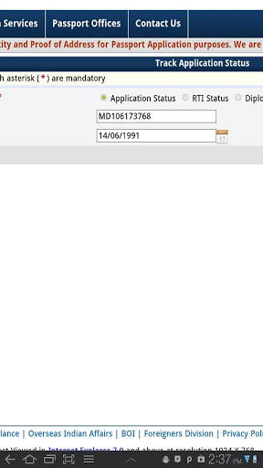 This App is used for track the Passport application status - by using this the you can easily track his status of the passport.- By using this you refer other details of the passport and passport office