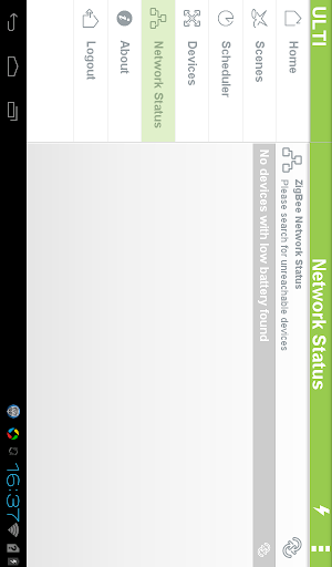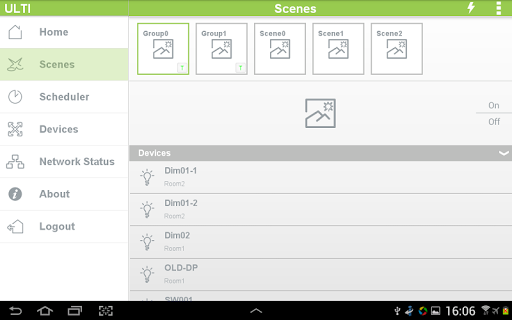 ULTI Home Control introduces a whole new level of convenience and functionality throughout your home. The ULTI application provides an Android device connection to your ULTI Home Control System. Either locally, through your home’s wireless access point or via your device’s 3G connection, control of your home through ULTI is as simple as connecting. Once connected, you will have available at your fingertips, control not only your lighting, but also curtain, climate and entertainment as well by simply one touch.