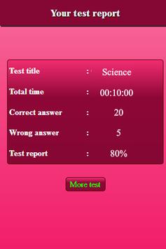 This App contains 10,000 questions. This Science test is the best way to improve your Science knowledge. This Science test app is perfect for lower, intermediate and upper levels.