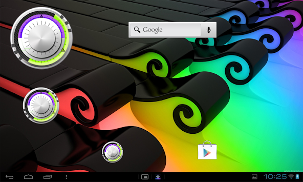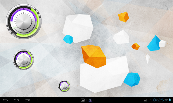 Set a futuristic look to your smartphone by adding this cool analog Clock Widget. Displays time by means of two cool discs. Purple disc indicates hours and the green hand indicates minutes.
