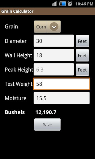 With this application you can easily calculate the amount of grain stored in a round bin.